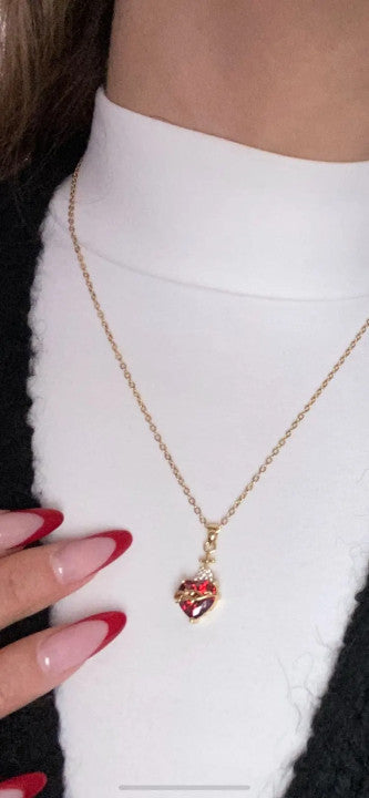 El corazón está finamente engastado con piedras de circonia, que reflejan la luz como un resplandor celestial.