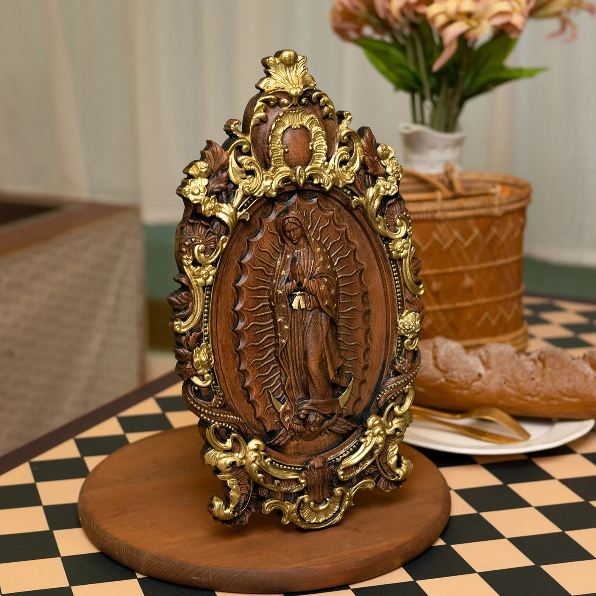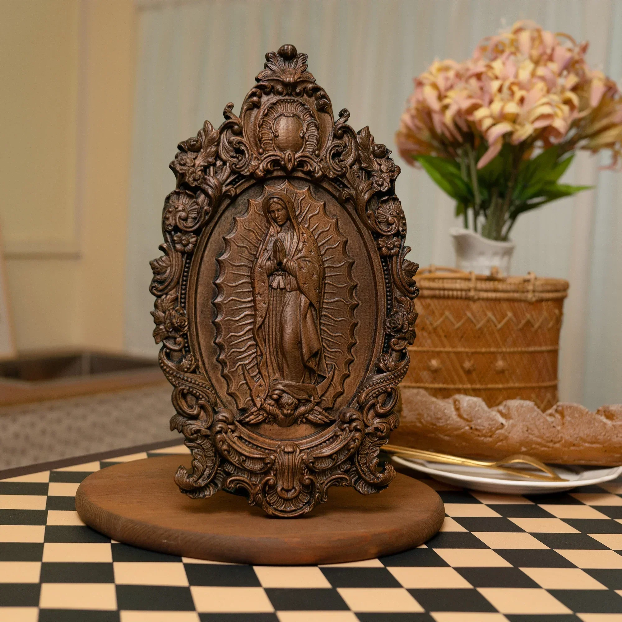 Esta escultura es perfecta para altares, espacios de oración o para quienes desean un toque de espiritualidad elegante y significativo en su hogar, convirtiéndose en un objeto indispensable para todo devoto de Nuestra Señora de Guadalupe.