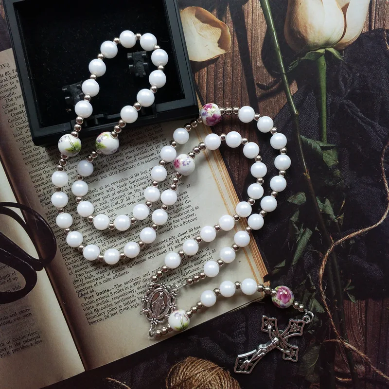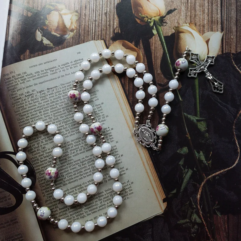 · 1 Rosario de la Virgen María y Cristo con la Cruz Blanca