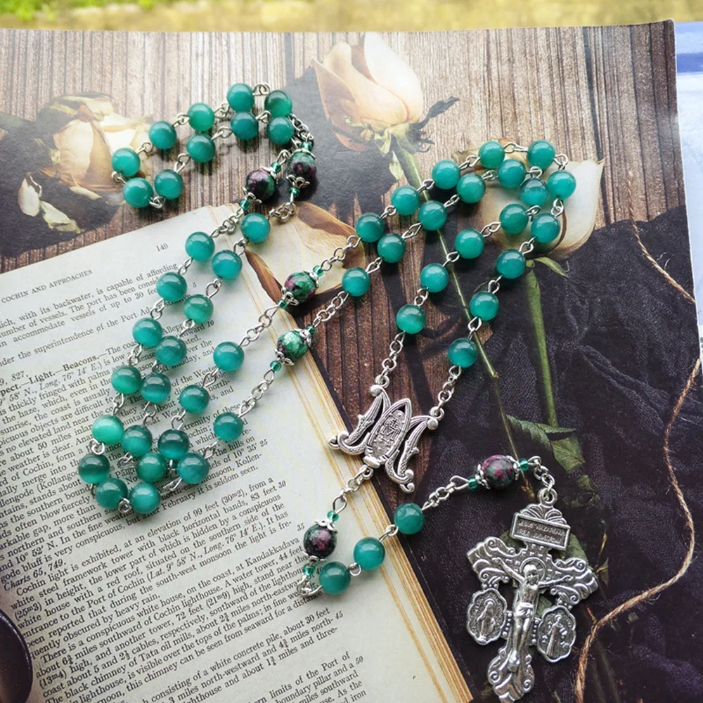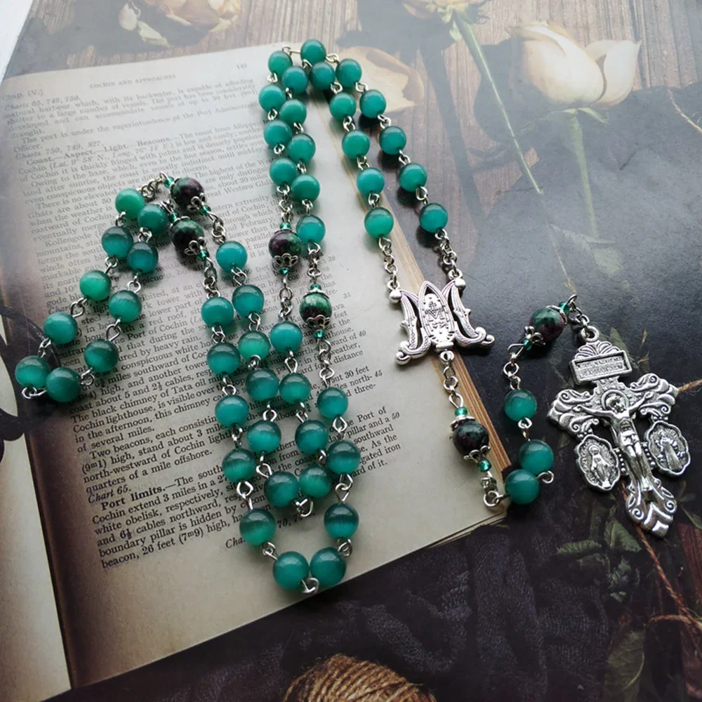 Rosario Con Medalla Milagrosa Hecha de Piedras de Ópalo
