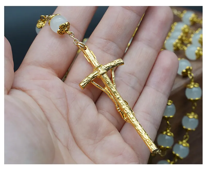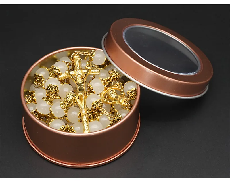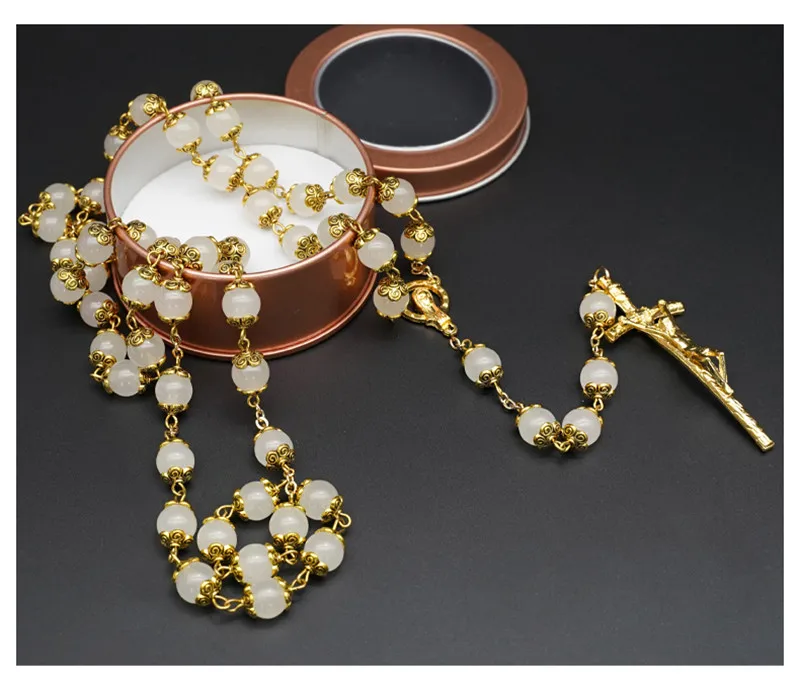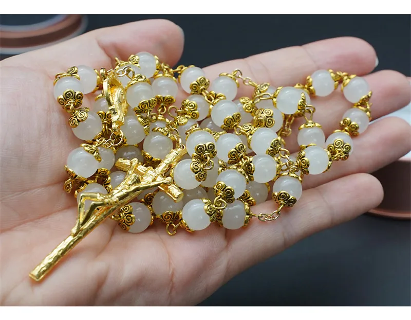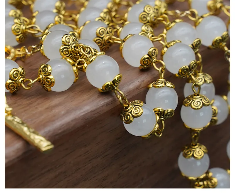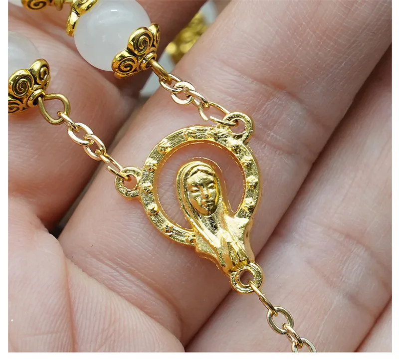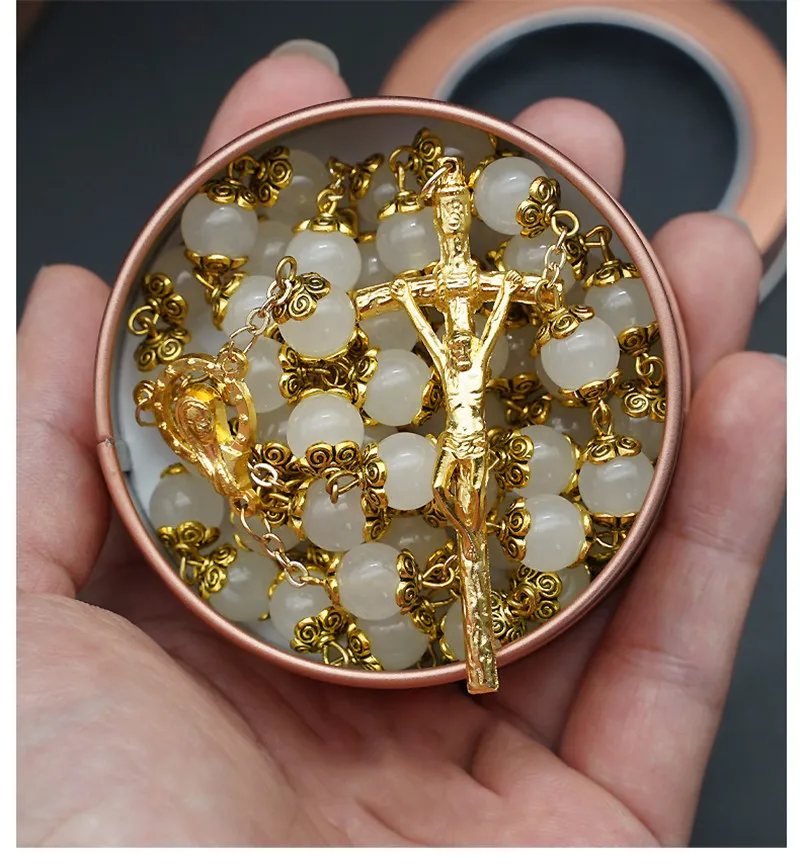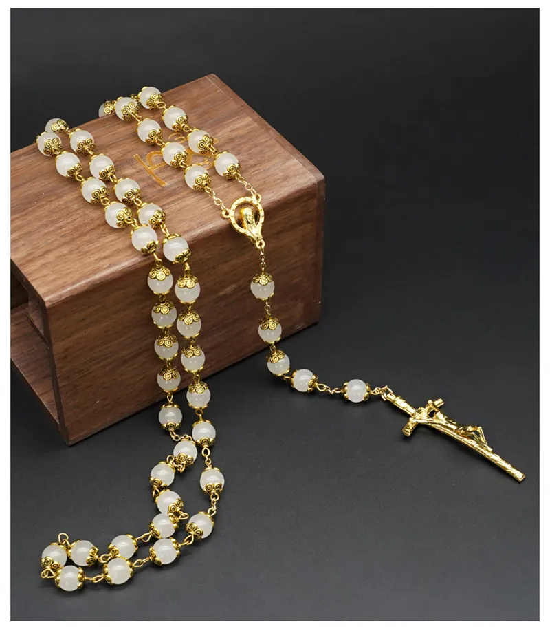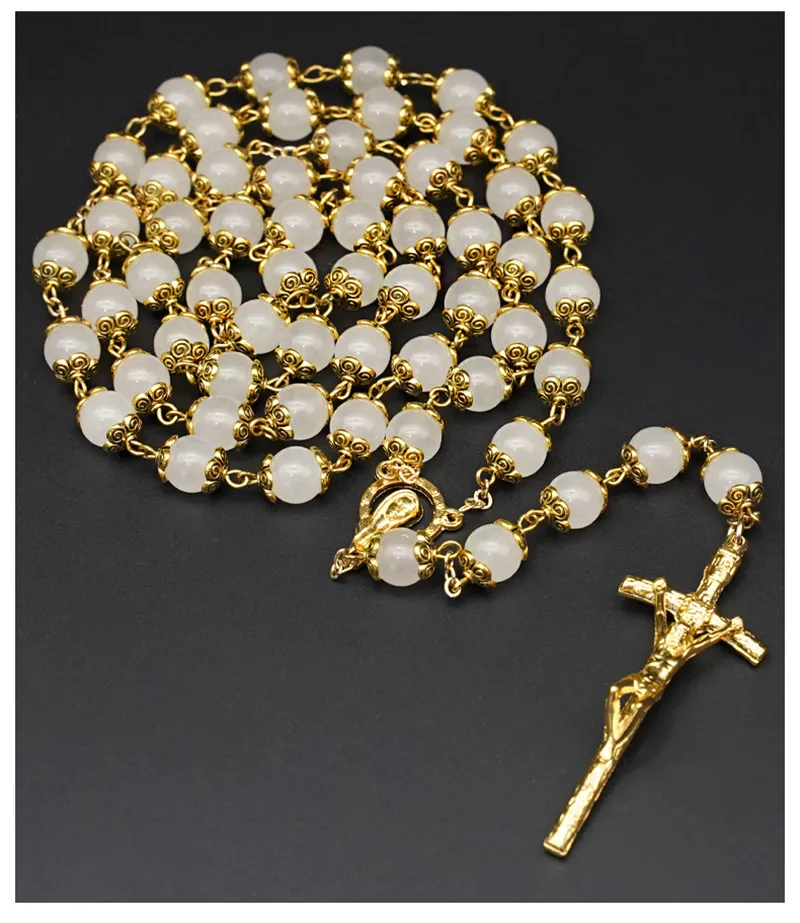 Este rosario blanco, símbolo de pureza y paz, invita a los fieles a contemplar la vida y los misterios de María.