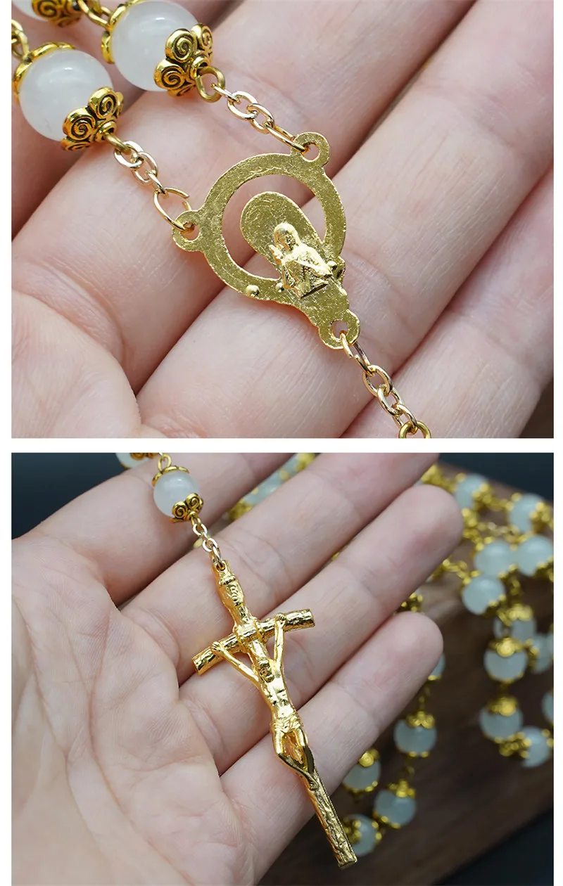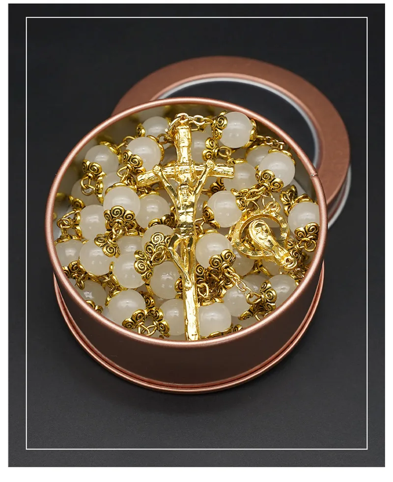 Este rosario irradia una luz espiritual que ilumina la fe y fortalece la conexión con la Virgen María.